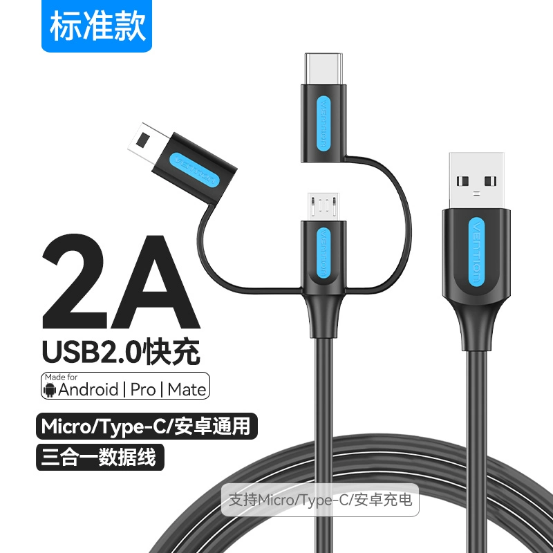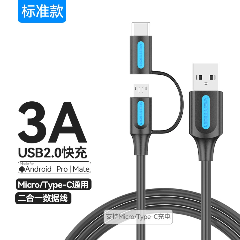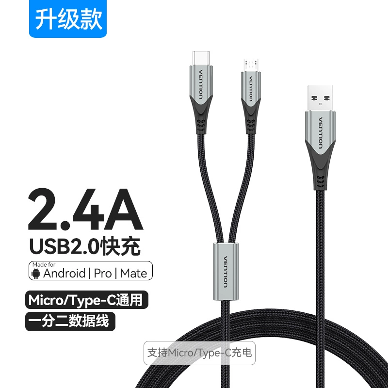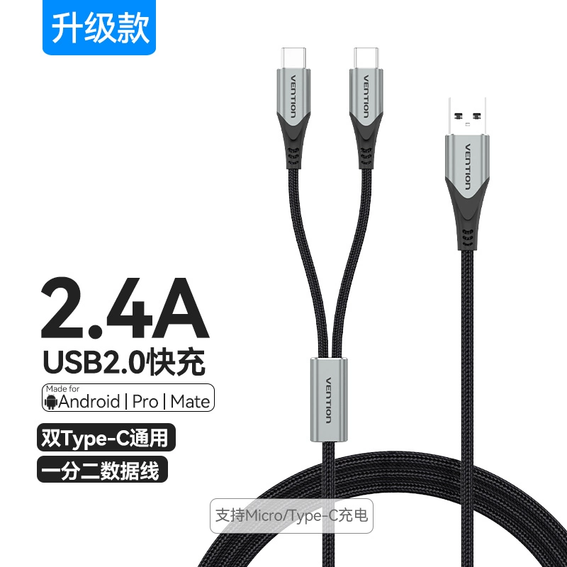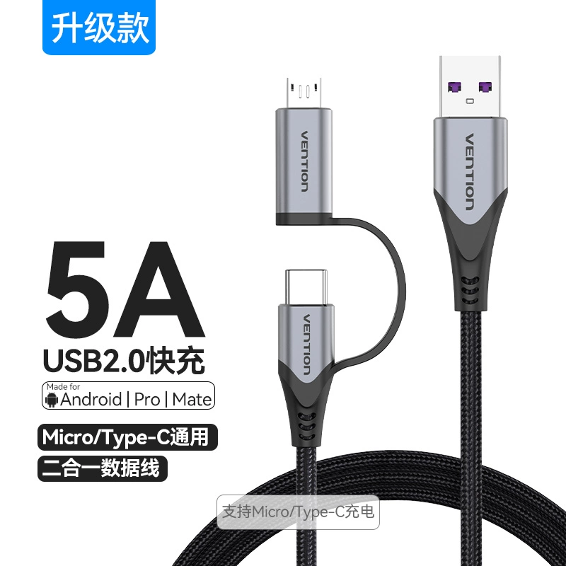 Wei Xun three-in-one data cable type-c+micro usb is suitable for Android 5a two-in-one drag two-wire TPC braided charger cable is suitable for super fast charging mobile phones