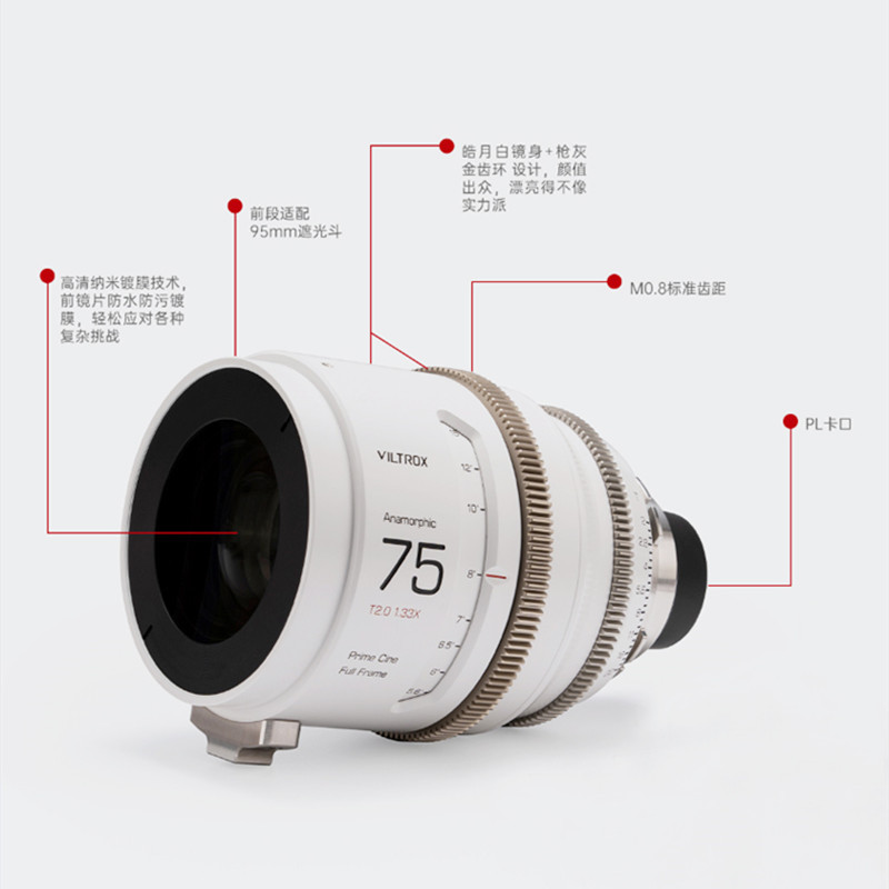 | nameOriginal | Wei Zhuo Shi 75mm T2.0 full frame PL bayonet lens HD video camera fixed focus wide silver film lens |