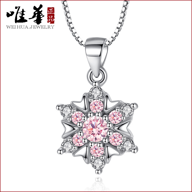 Weihua pendant zircon lucky octagonal snowflake necklace snowflake necklace pendant women’s silver plated jewelry wholesale