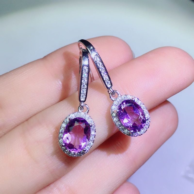 | nameOriginal | Welfare special offer 925 silver gold-plated natural amethyst earrings stone 6*8mm elegant and fresh amethyst earrings |