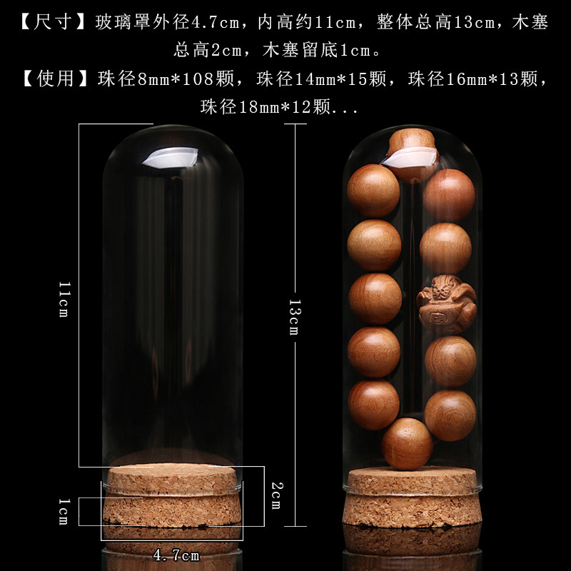 Wenwan glass cover Walnut Rosewood agarwood olive string bracelet sealed bottle display shelf decoration box base