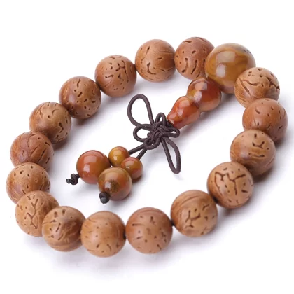 Wenwan Qinling brain pattern round Buddhist beads rosary peach core