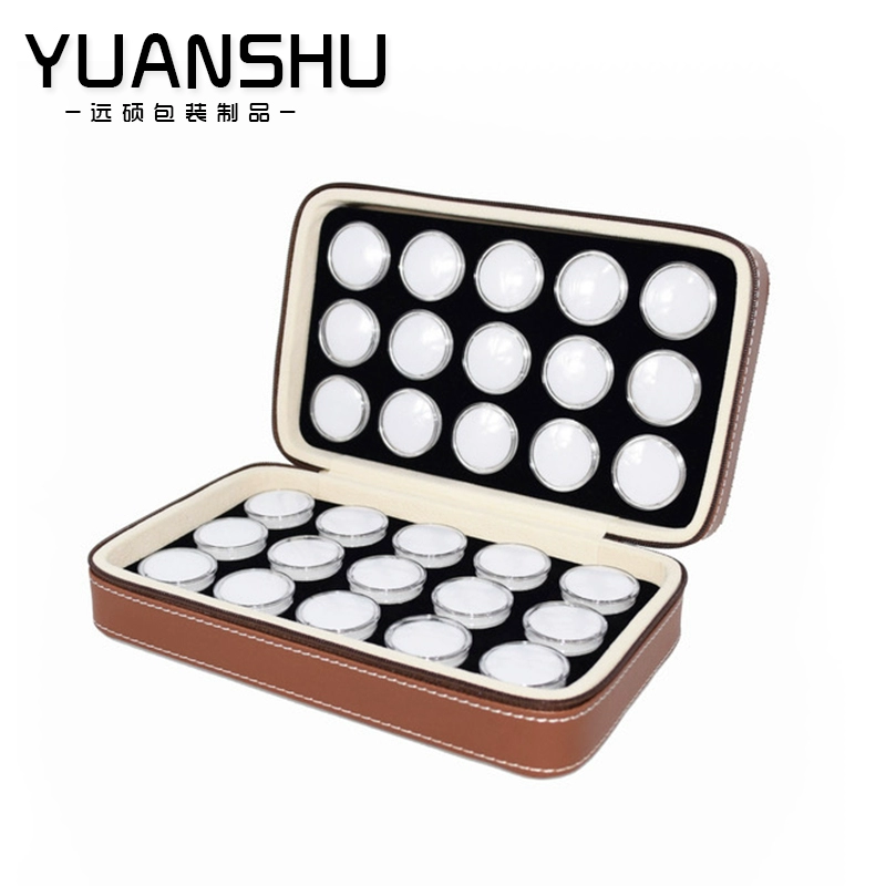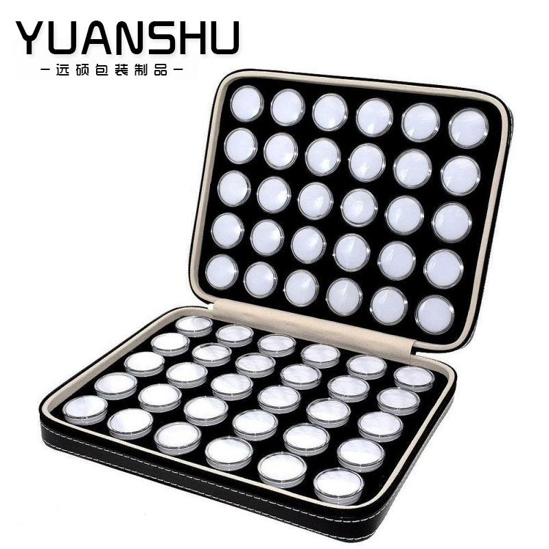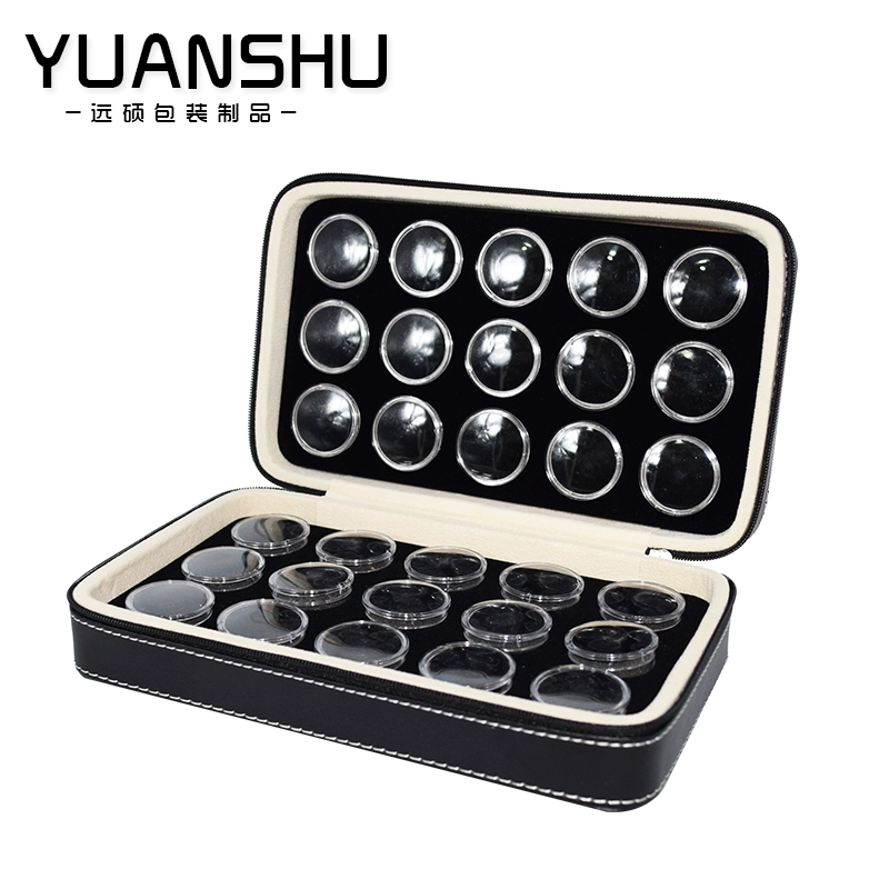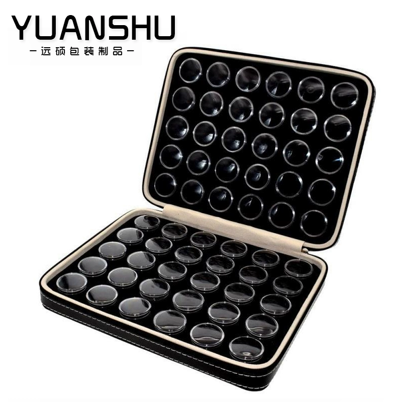 Wenwan storage box jewelry ring surface bare stone gemstone bead display box plastic transparent small round box zipper leather case