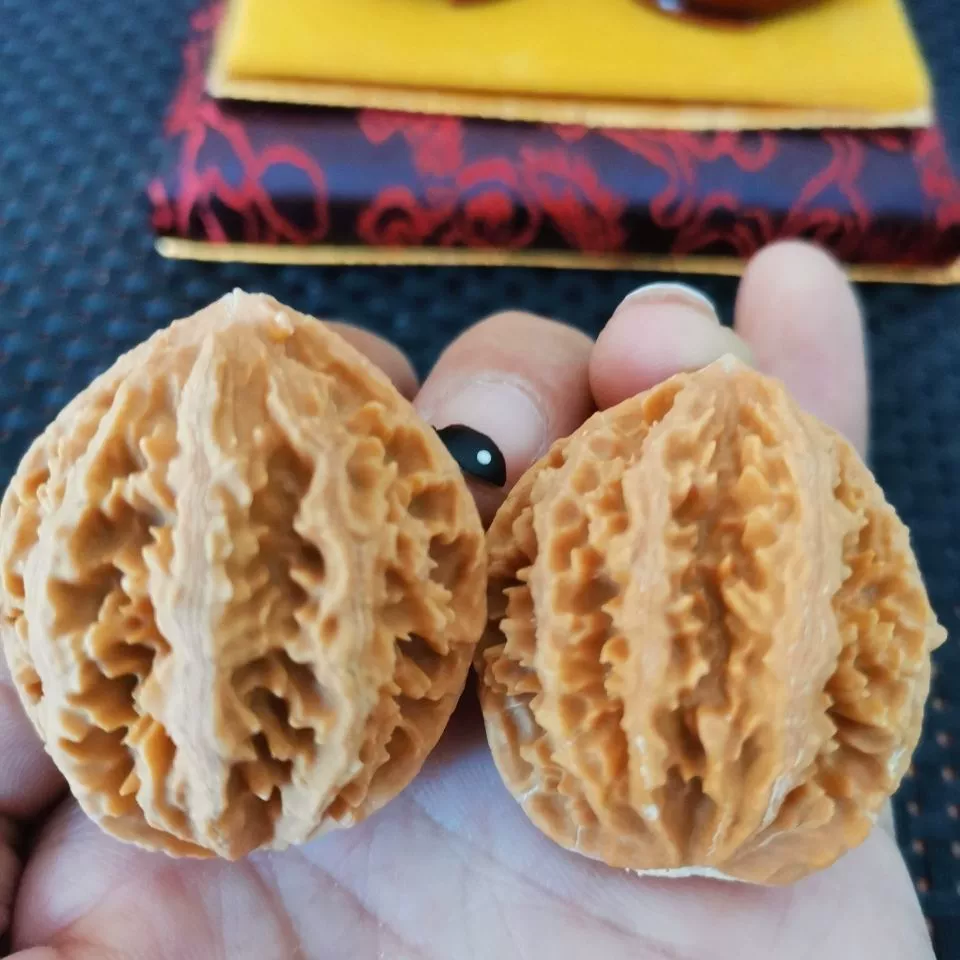 Wenwan walnut Beijing eight-sided small hand-twisted patinated and colored lantern Qiuzi hand-twisted walnut plate to play with three-sided baby’s breath