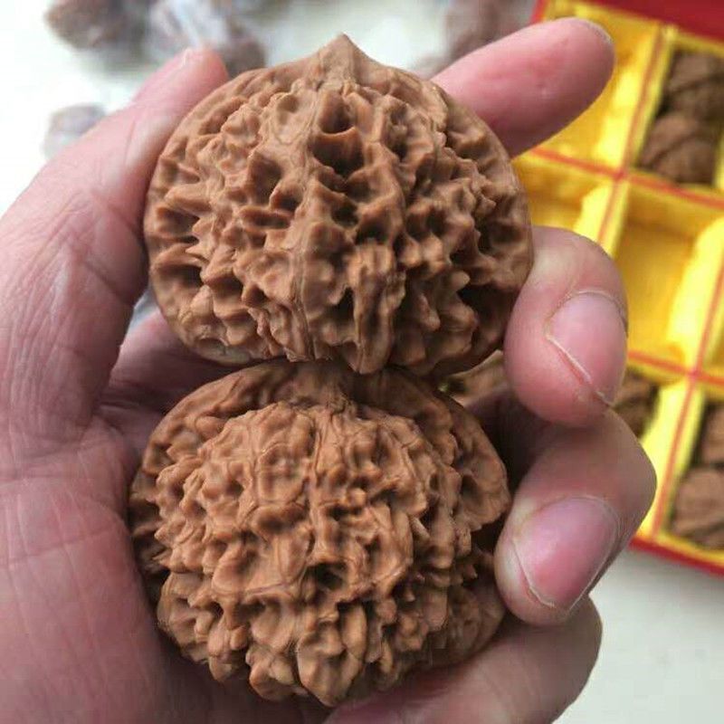 Wenwan walnut handle playing walnut Kirin pattern official hat Wang Yong official hat four buildings lion head entry-level hand practice pair