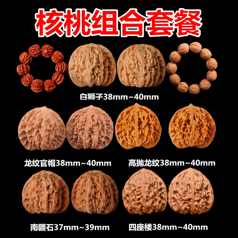 | nameOriginal | Wenwan Walnut King Yong Dragon Pattern Official Hat White Lion Head Xiao Qiuzi Bracelet Four Buildings Wheat Ear Tiger Head Combination Package |