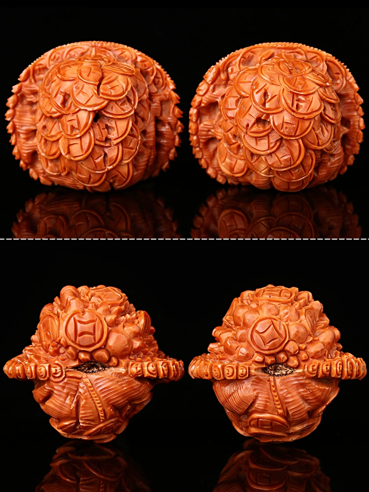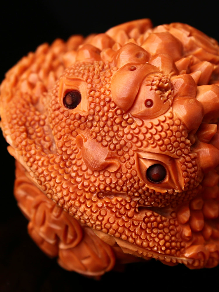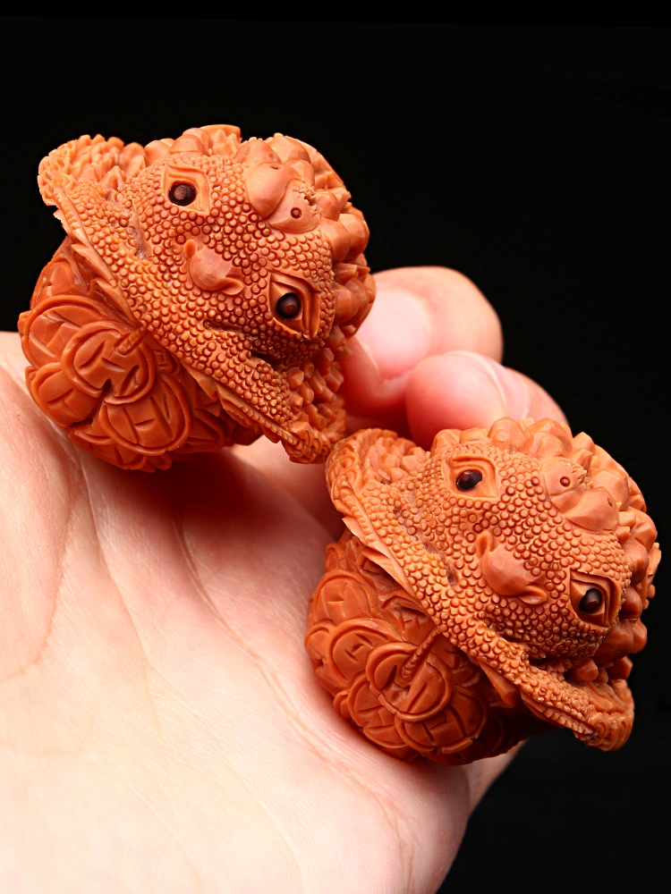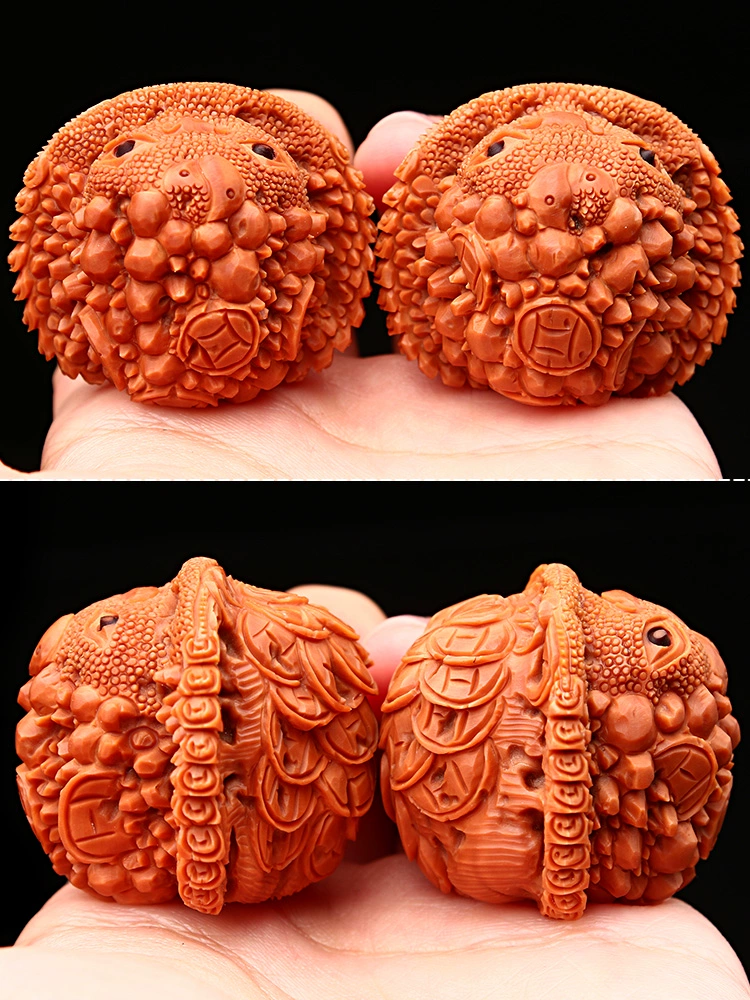 | nameOriginal | Wenwan walnut three-dimensional carving ancient golden toad gift toad short pile white lion head plate gift handball handle piece mythical beast |