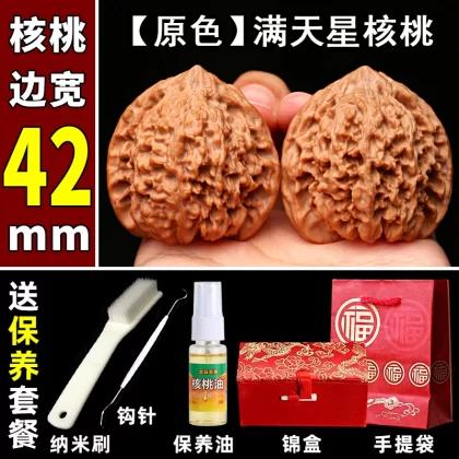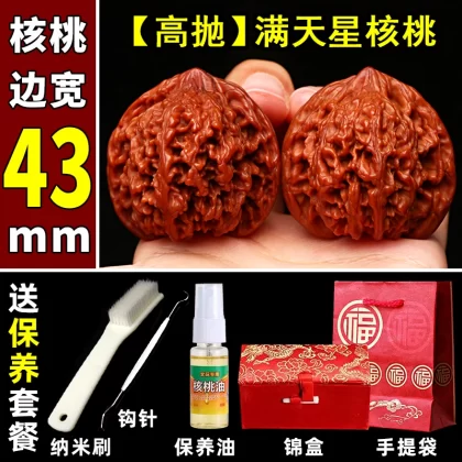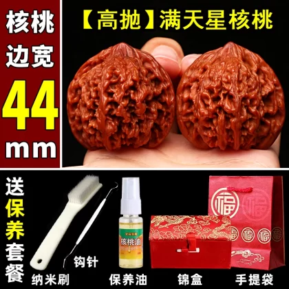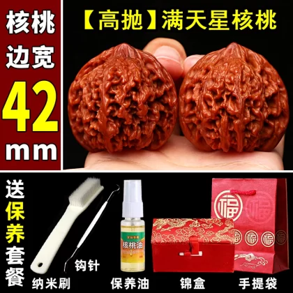Wenwan walnut toy high-throw patinated gypsophila, red skin, fine texture, old tree original color lion head plate to play with handle pieces
