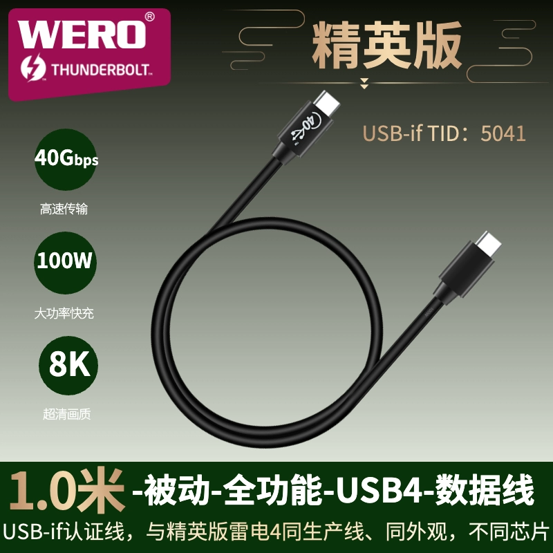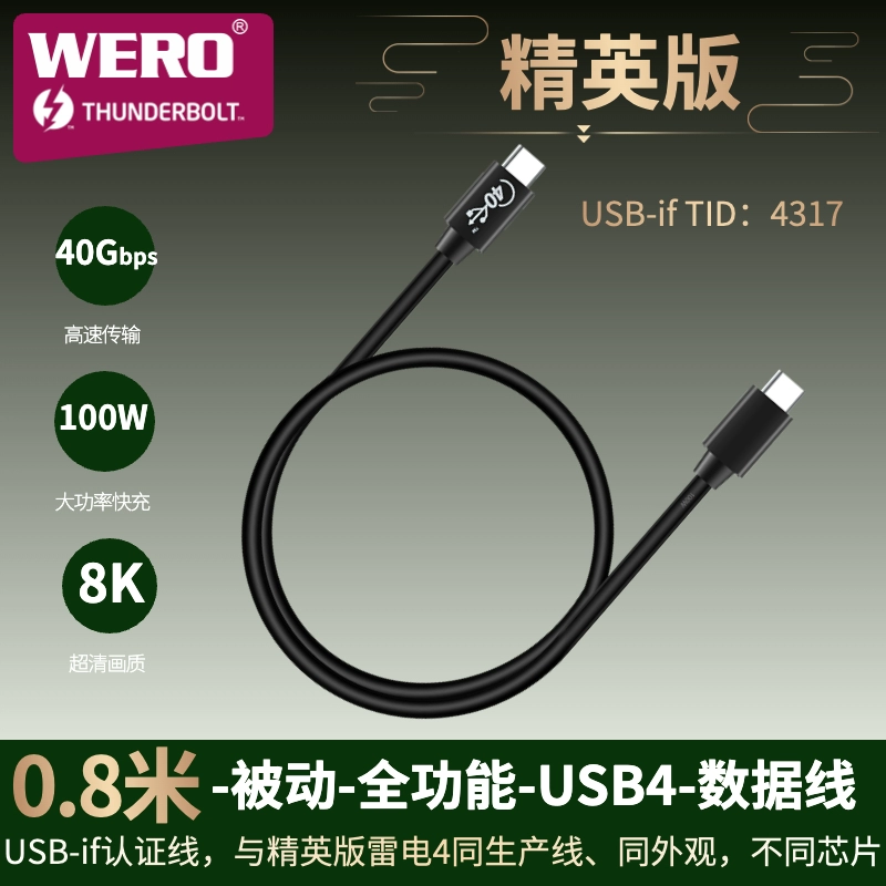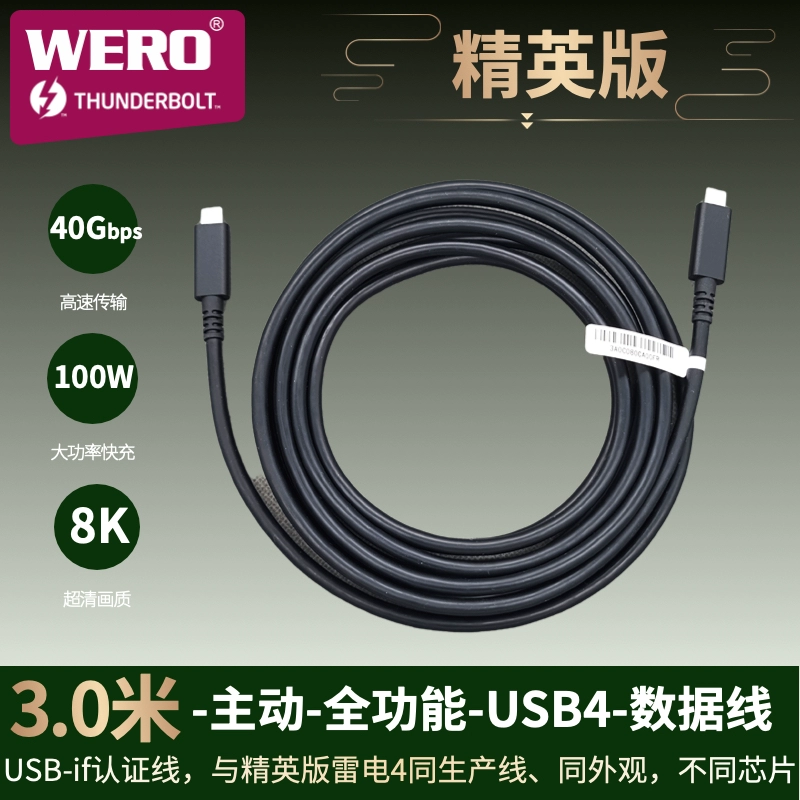 WERO 0.3/0.8/1.0/3m USB4 full-featured PD100W40Gbps compatible Thunderbolt 34 data cable