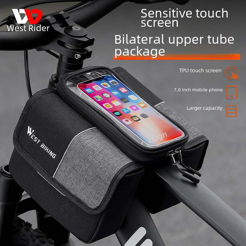 | nameOriginal | West rider bilateral upper tube bag touch screen saddle bag mountain bike front beam bag bicycle mobile phone bag riding equipment |