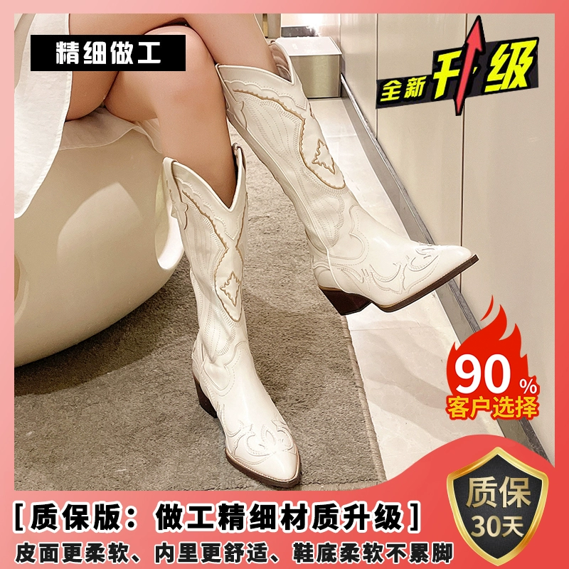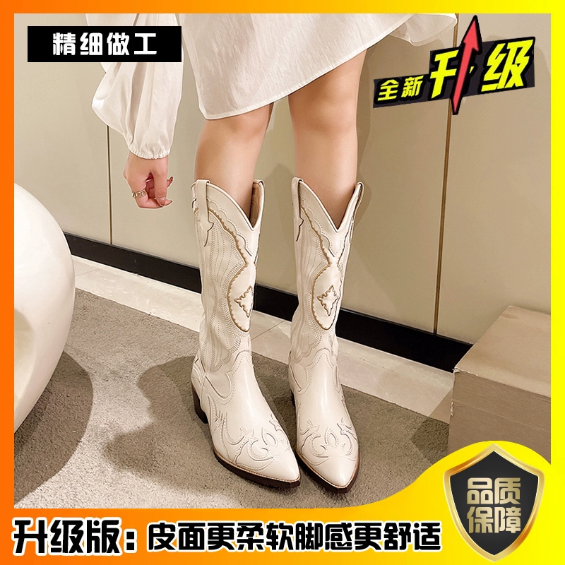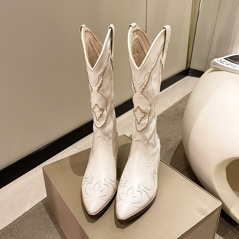 | nameOriginal | Western autumn retro embroidered pointed toe mid-calf boots |