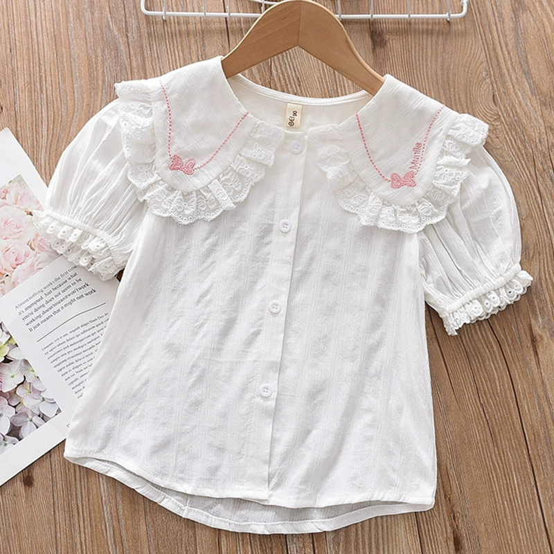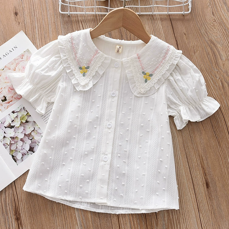 | nameOriginal | Western girls pure cotton short-sleeved children's embroidered princess shirt short-sleeved tops for big children T-shirts 2023 summer new |