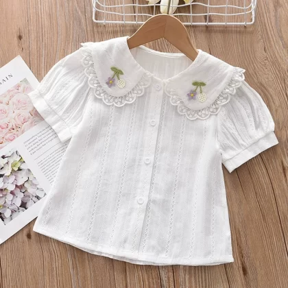 | nameOriginal | Western girls pure cotton short-sleeved children's embroidered princess shirt short-sleeved tops for big children T-shirts 2023 summer new |