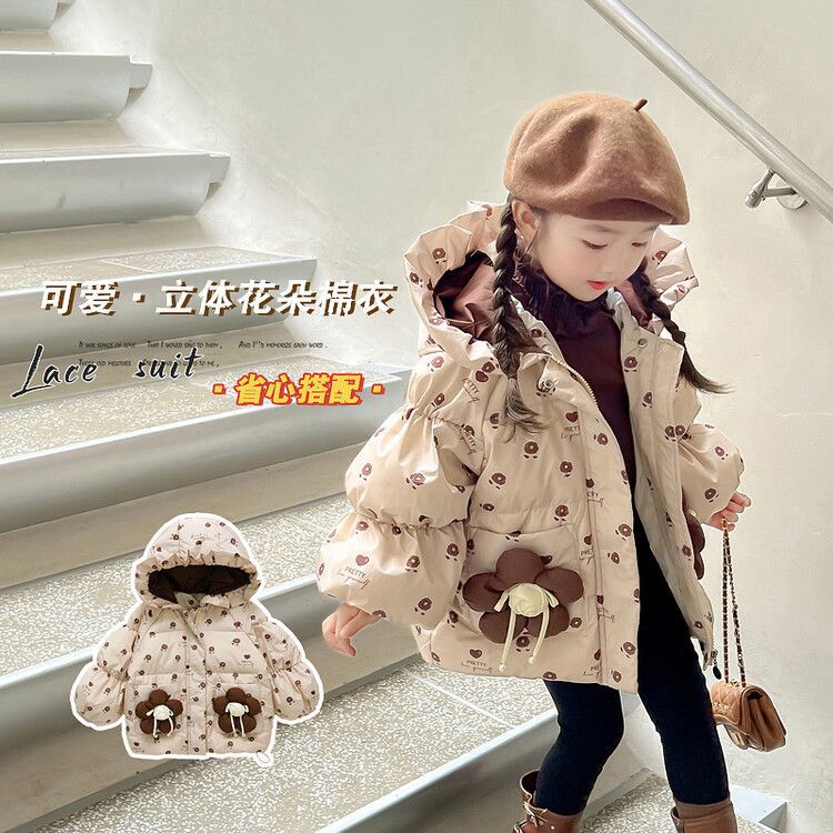 Western Style 2024 Hooded Girls New Winter Children’s Thickened Cotton-padded Coat Winter Clothes Baby’s Coat Down Cotton-padded Coat