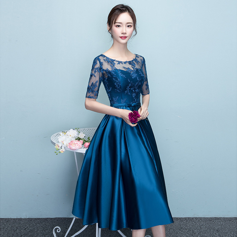 | nameOriginal | Western style dress 2024 new summer banquet mid-length elegant party blue slimming evening dress for annual meeting |
