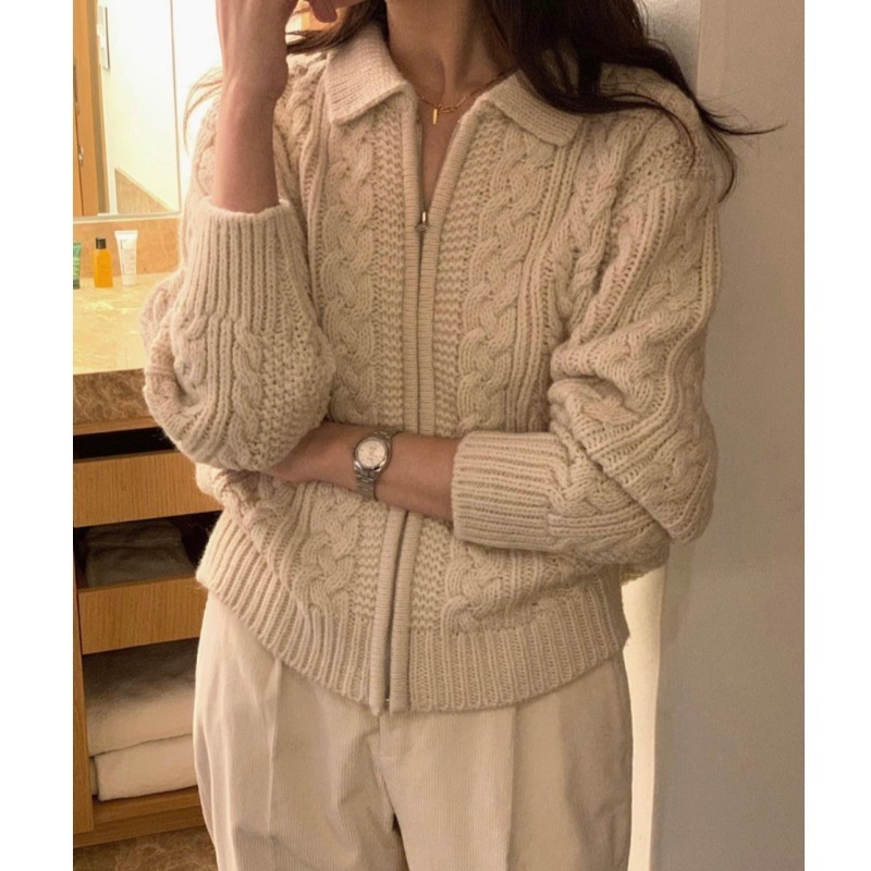 | nameOriginal | Western style lapel twist sweater coat for women autumn and winter elegant temperament all-match long sleeve zipper sweater cardigan top |