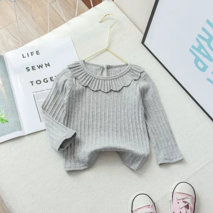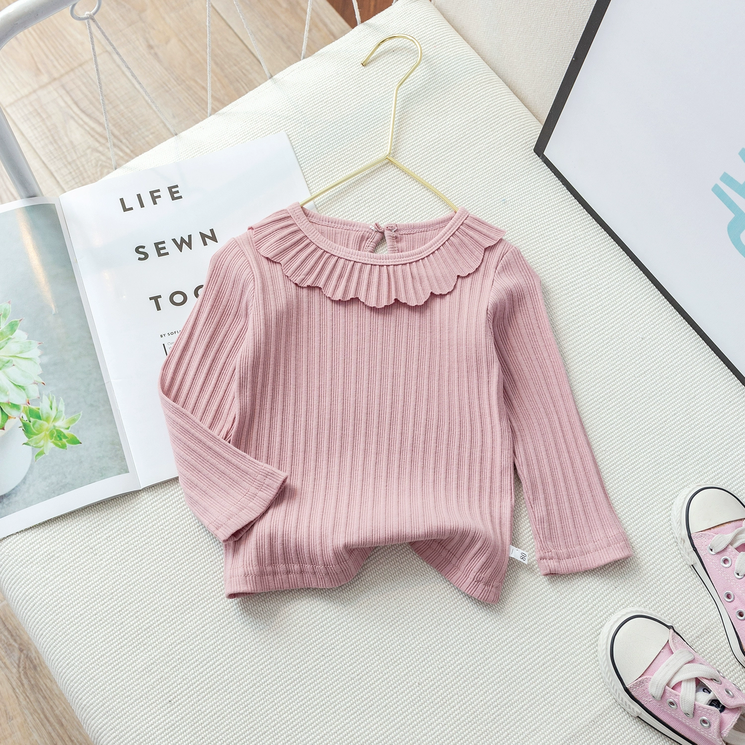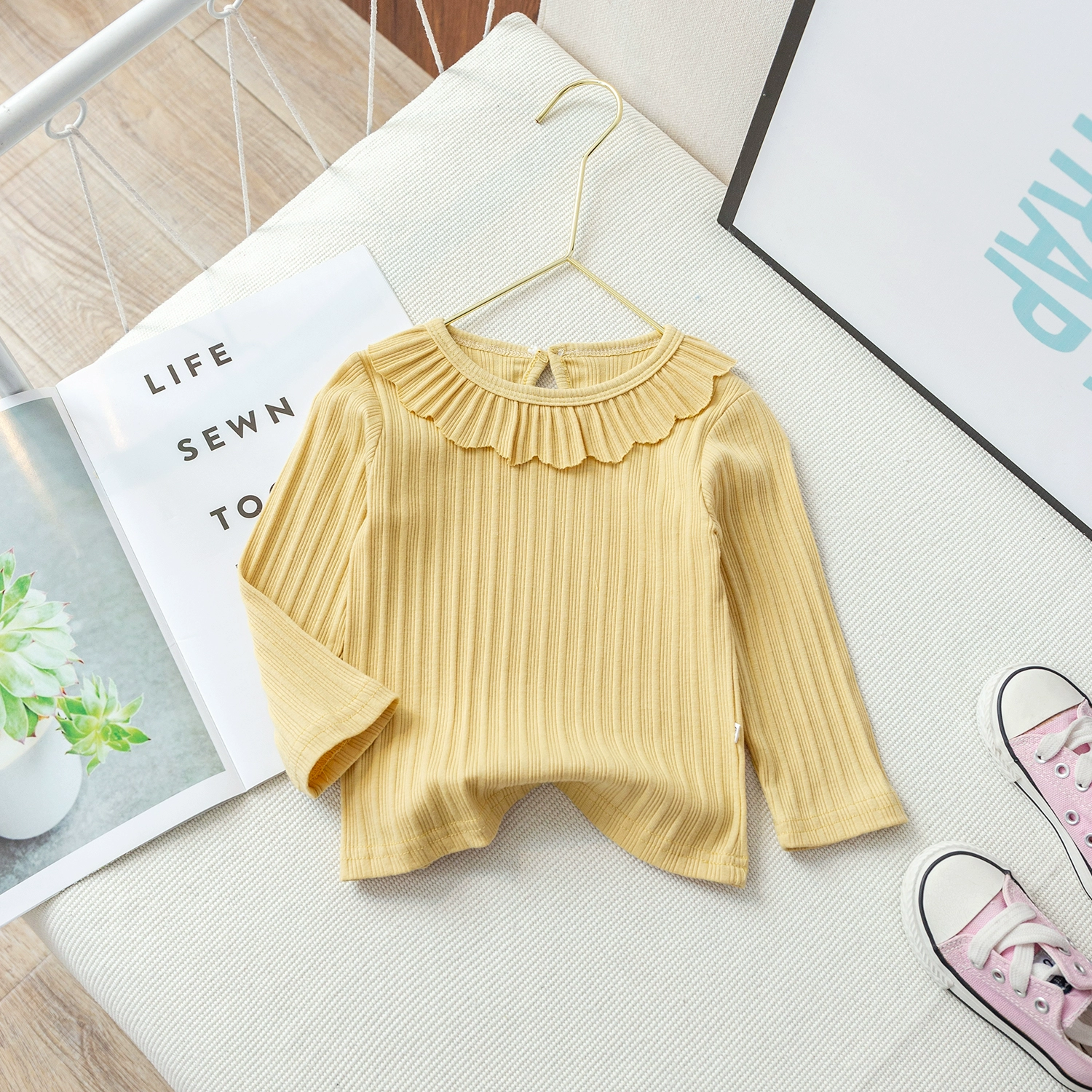 Western-style long-sleeved tops with pure cotton lapels for spring and autumn wear