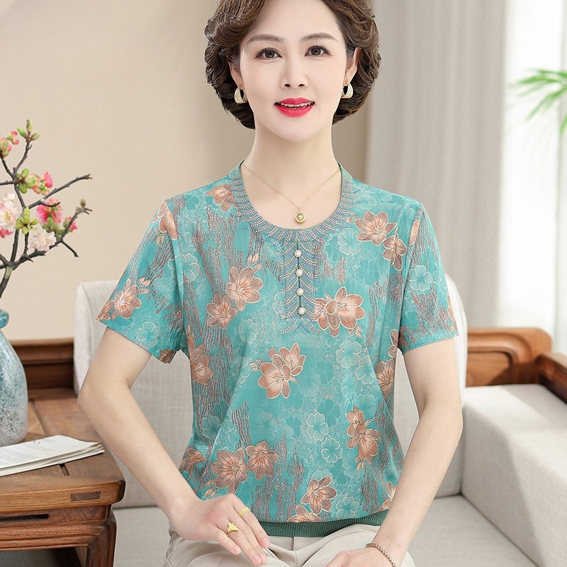 | nameOriginal | Western Style Mother Suit Summer Round Neck Thin Shirt 50-year-old Middle-aged Women's Short-sleeved T-shirt Elderly Women's Two-piece Set |