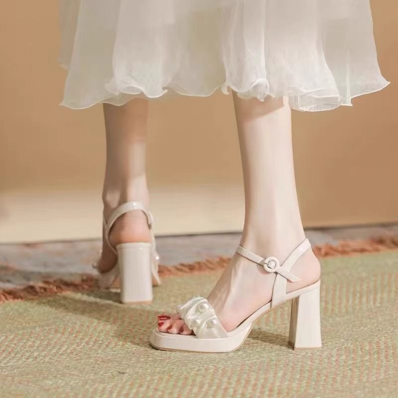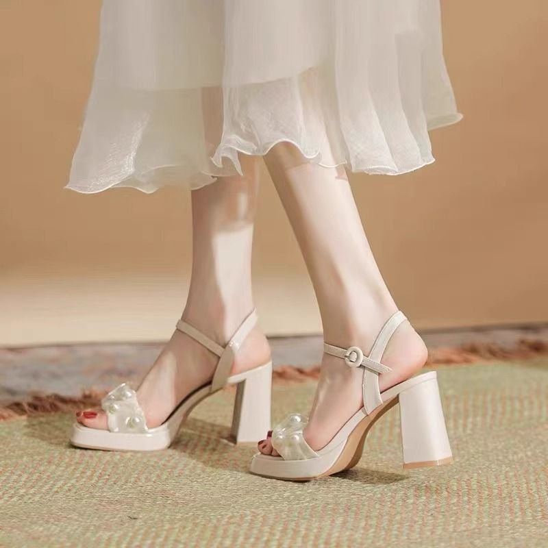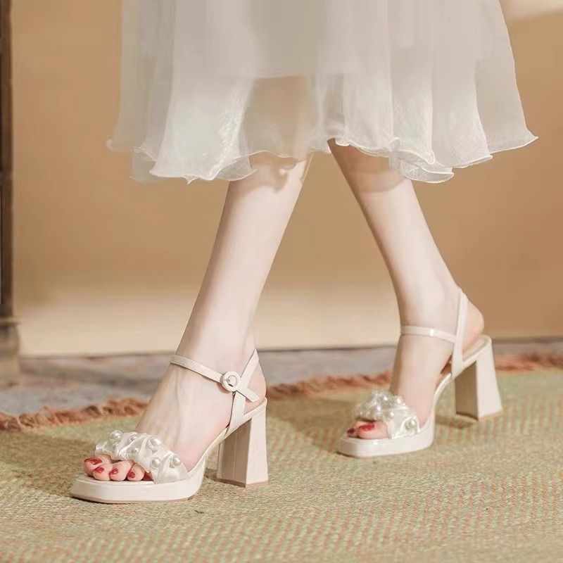 | nameOriginal | Western Style Platform Open Toe Sandals Women's 2024 Summer French Style Dress High Heels with Pearl Thick Heels |