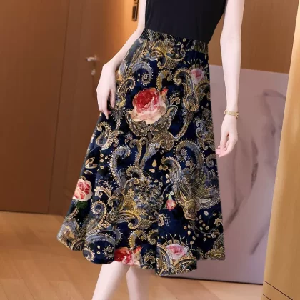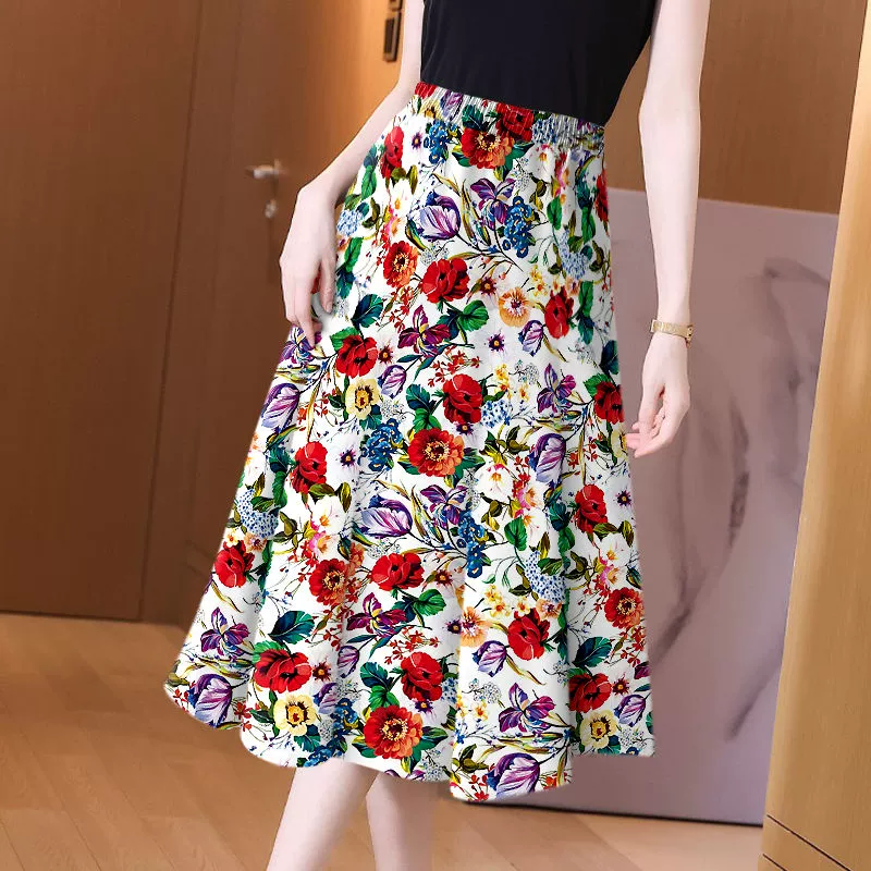 | nameOriginal | Western-style printed draped flesh-covering knee-high mid-length skirt |