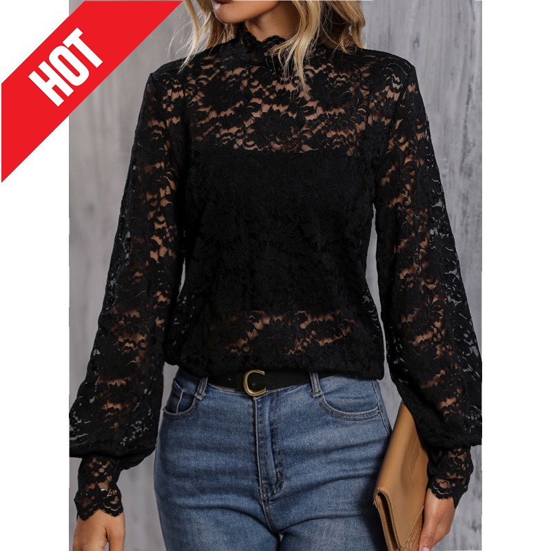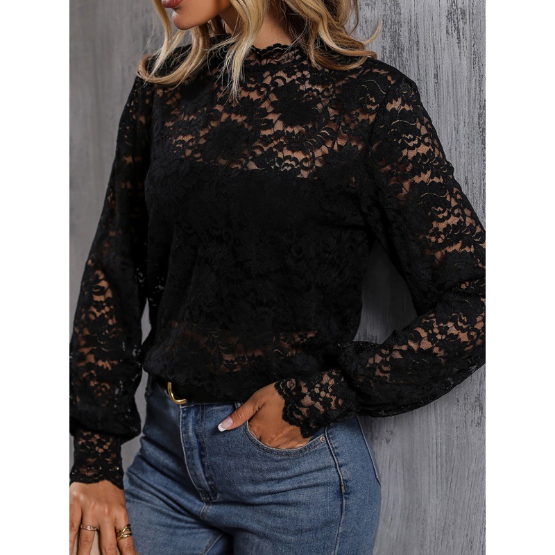 | nameOriginal | Western style small shirt for women 2024 autumn new cross-border foreign trade European and American Amazon long sleeve sexy style slim lace top |