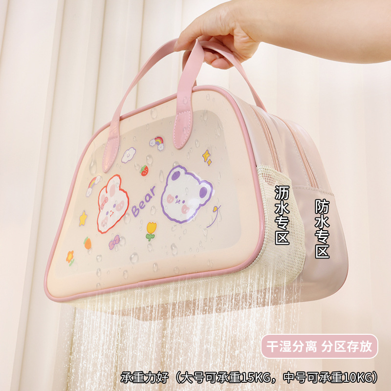 Wet and Dry separation cartoon cosmetic bag women's portable large capacity Travel storage bag swimming bath waterproof wash bag