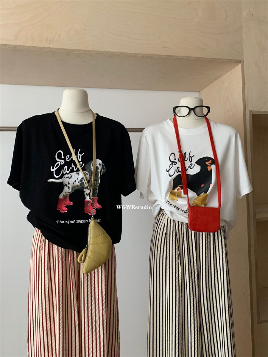 | nameOriginal | WGWE lazy style dog print short-sleeved women's summer loose and slim new t-shirt mid-length half-sleeved top |