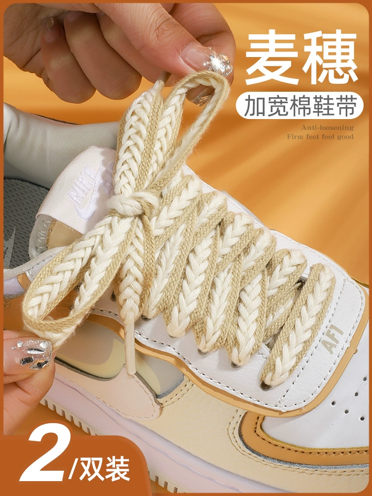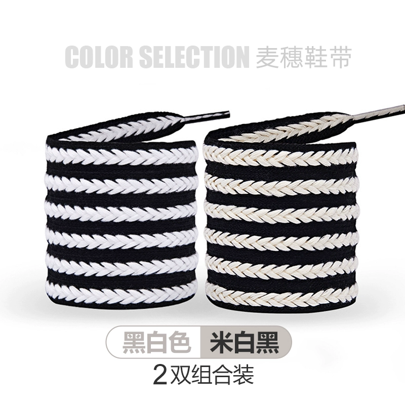 | nameOriginal | Wheat shoelaces for women, black and white, suitable for McQueen white shoes, Converse canvas shoes, flat wide cotton twist shoelaces for men |
