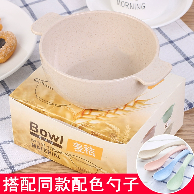 | nameOriginal | Wheat straw children's binaural bowl baby anti-fall cartoon cute insulated anti-scald children's eating food bowl |