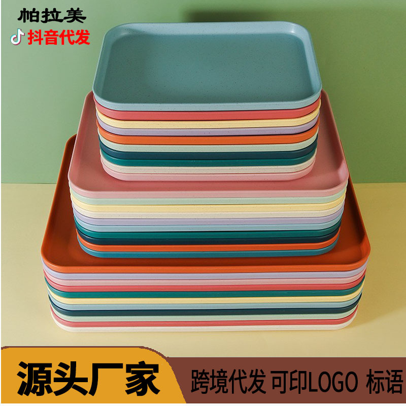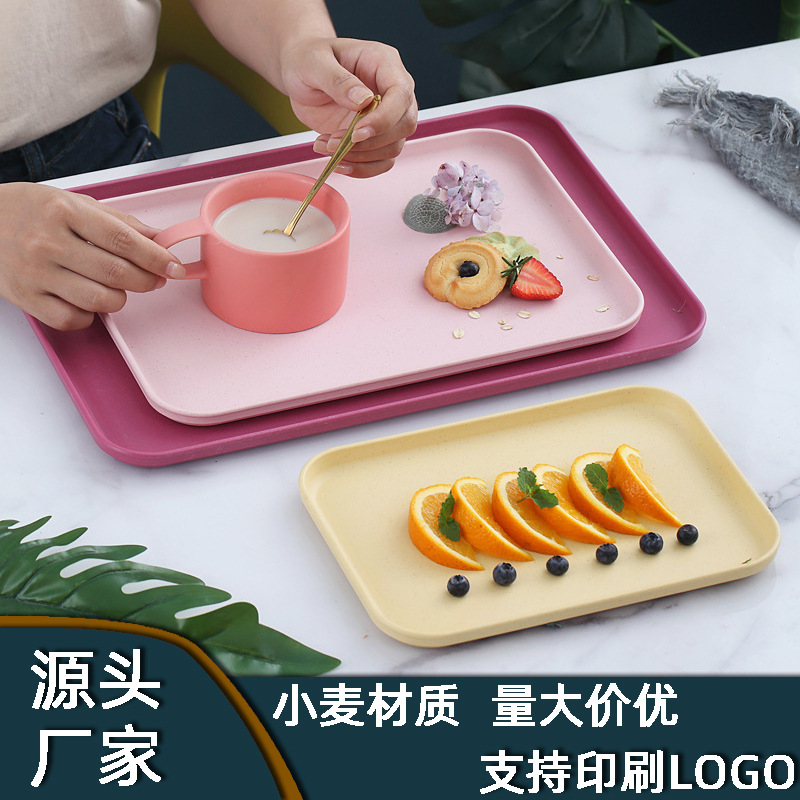 | nameOriginal | Wheat straw plate household rectangular plastic plate hotel Western food serving tray fruit cake plate tea plate |