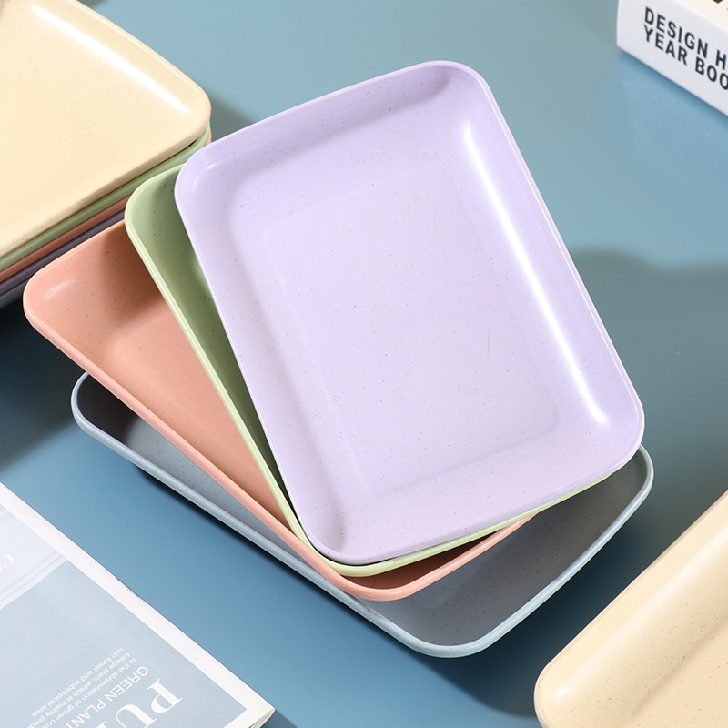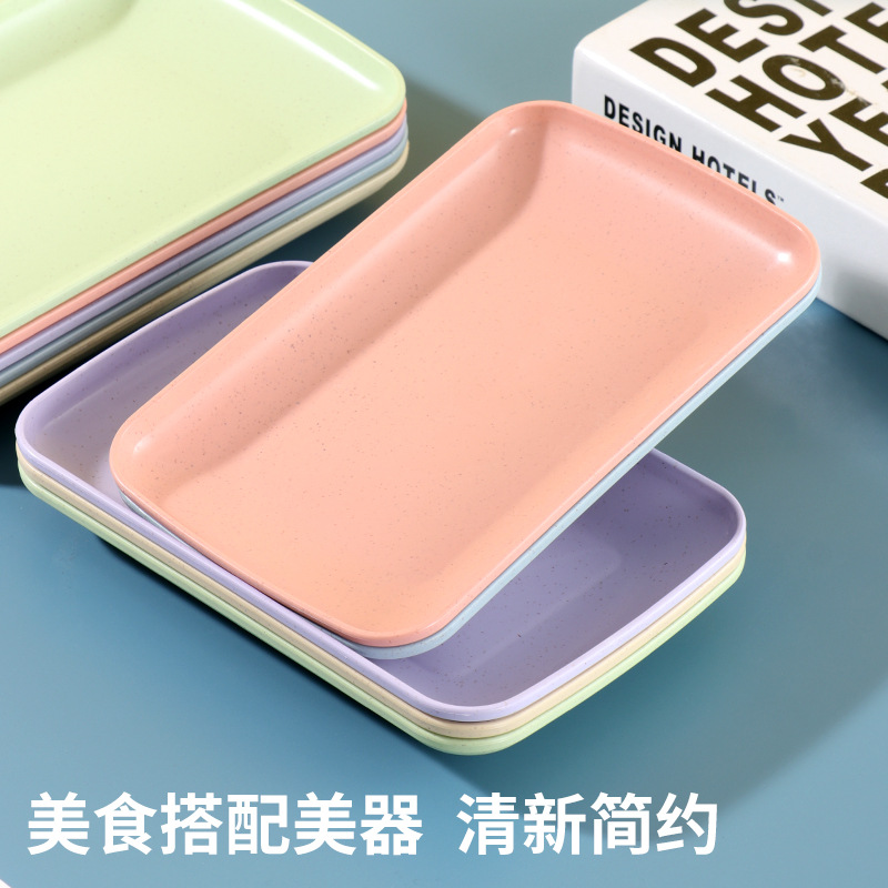 Wheat Straw Rice Bowel Plate Plastic Rectangular Plate Barbecue Plate Hot Pot Food Preparation Plate Stir-fry Flour String Cold Vegetable Plate