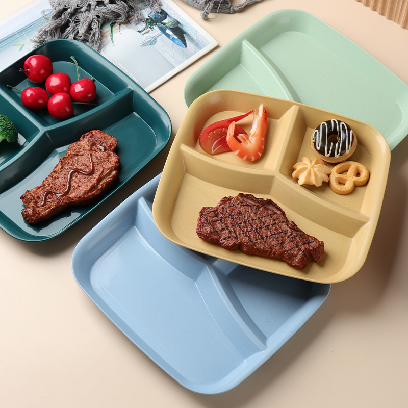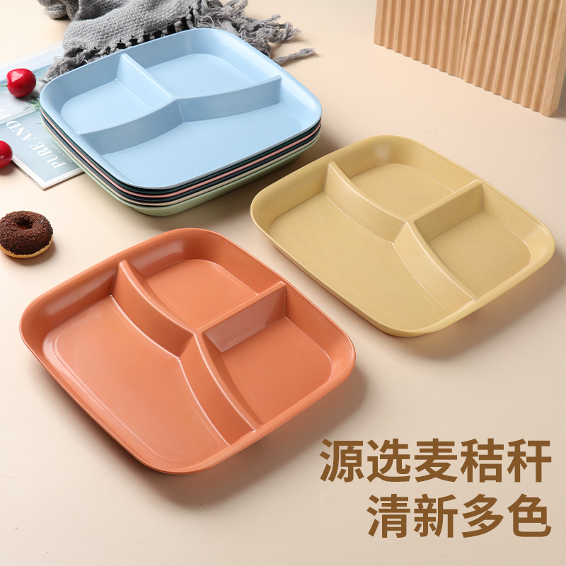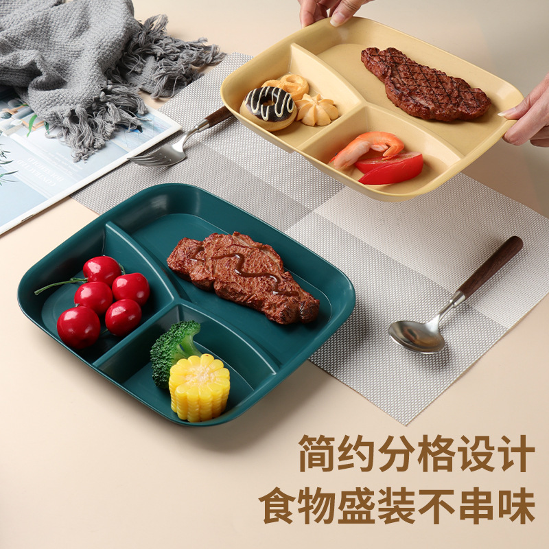 | nameOriginal | Wheat Straw Three-compartment Dinner Plate Household Living Room Fruit Salad Dinner Plate for Breakfast One-person Square Fat-reducing Plastic Plate |