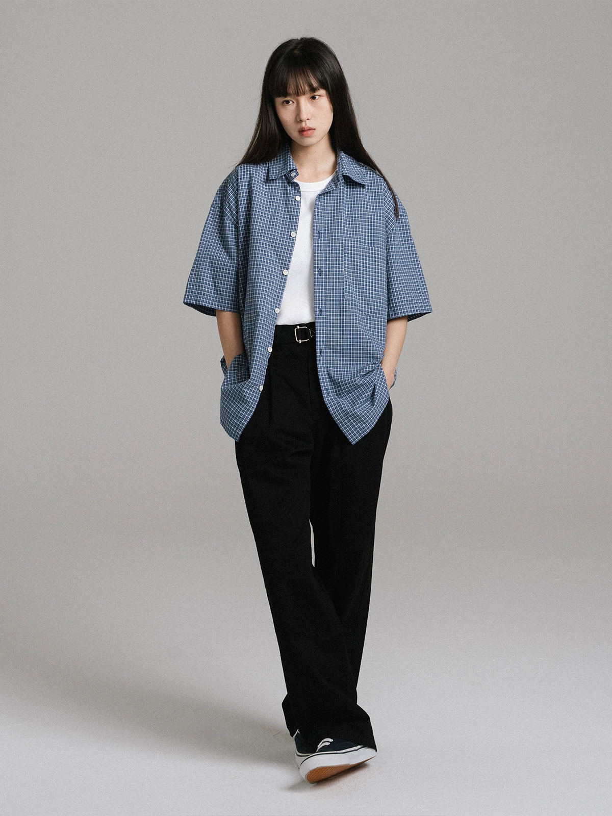 | nameOriginal | WHIMIN custom-woven retro blue plaid short-sleeved shirt |