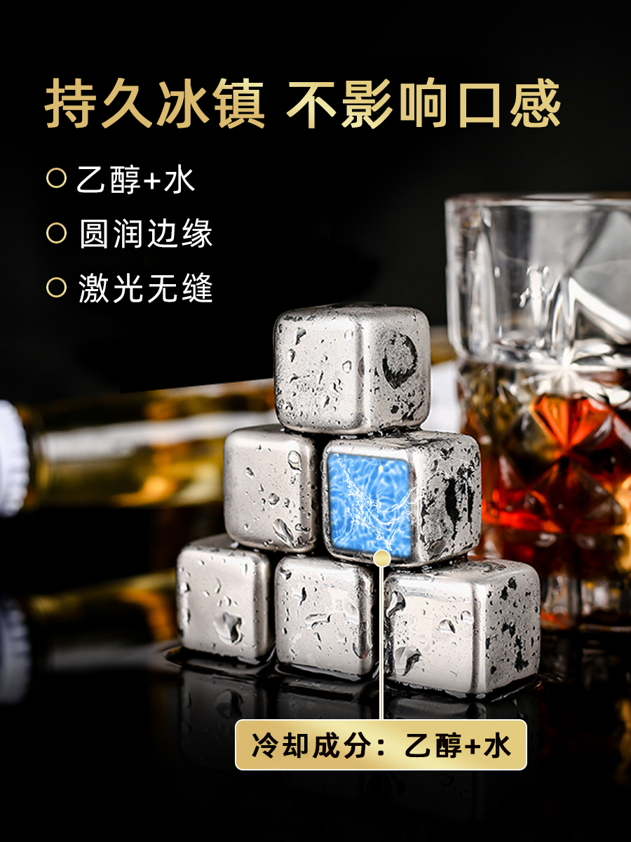 Whiskey Ice Wine Stone Beer Circulating Ice 304 Quick Frozen Stainless Steel Ice Block Iron Metal Ice Grain Household