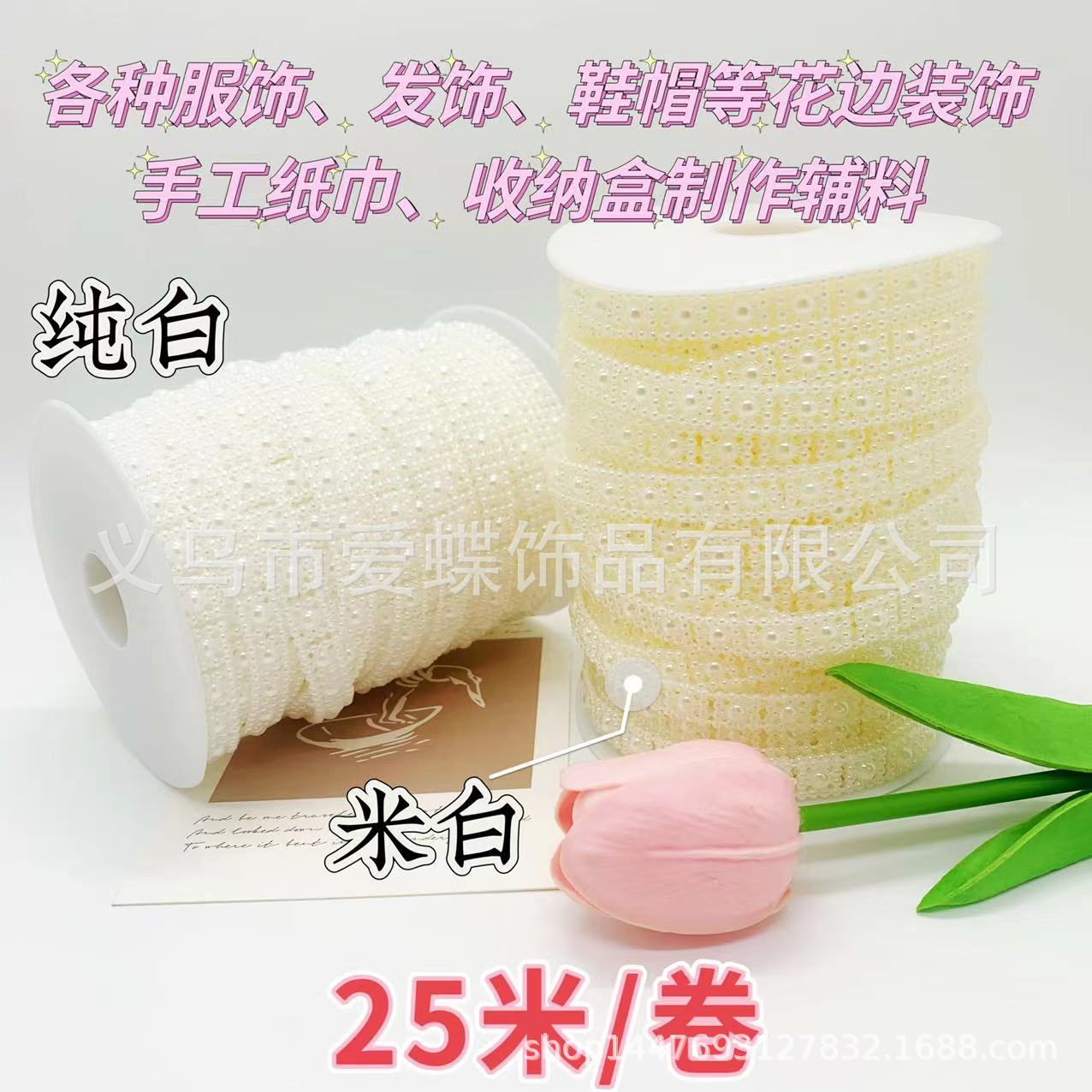 | nameOriginal | White 10mm sunflower positioning beads handmade DIY round fan lace accessories clothing hair accessories Pearl Chain |