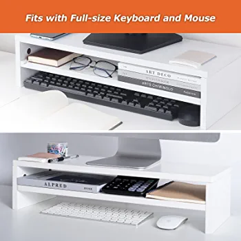 This 2-tier monitor riser stand offers extra storage space to keep your desktop organized and clutter-free.