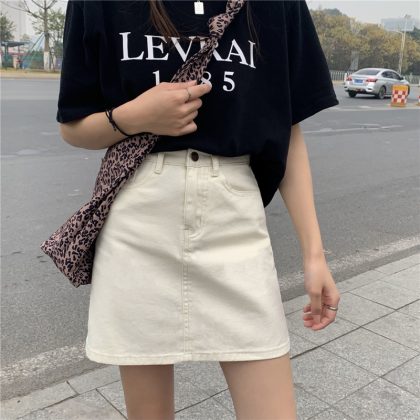 | nameOriginal | White A- line Skirt Women's Summer New High Waist Slimming Vintage Tooling Beige Small Black Denim Skirt |