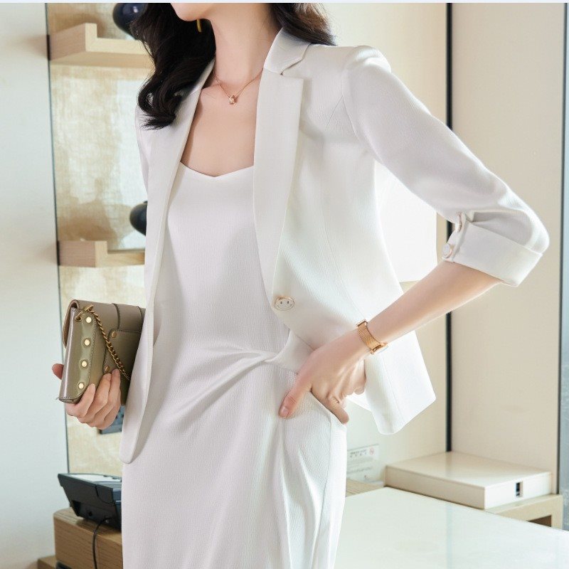 | nameOriginal | White Acetic Acid Small Suit Jacket Women's Summer Thin Small Casual Short Suit dress Two-piece Dress |