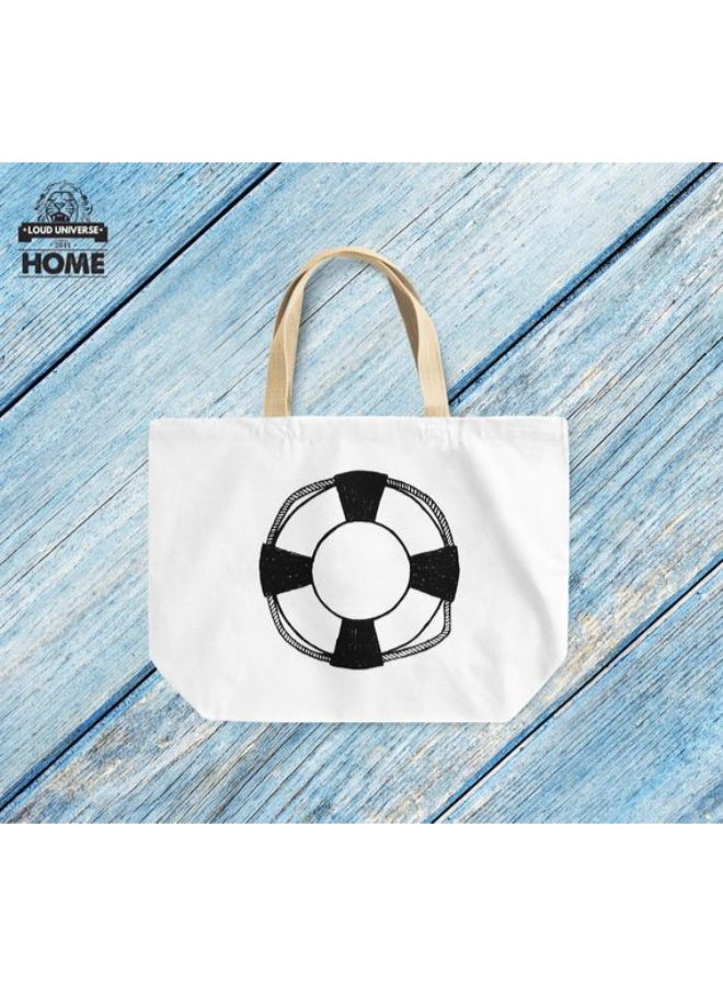 Nautical Life Saver Water Theme Beach Tote Bag White/Beige