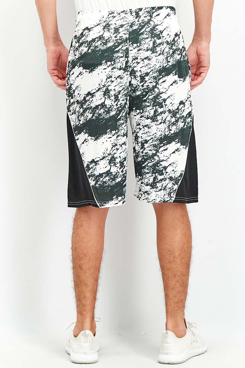 This product is easy to care for as it is machine washable. It has a sportswear fit and is available in international sizes. The fabric is made of 100% polyester and is light in thickness, making it suitable for basketball. Please note that the product color may appear slightly different due to lighting or monitor settings. The shorts feature an abstract print and belong to the white color family. They are categorized as sportswear shorts.