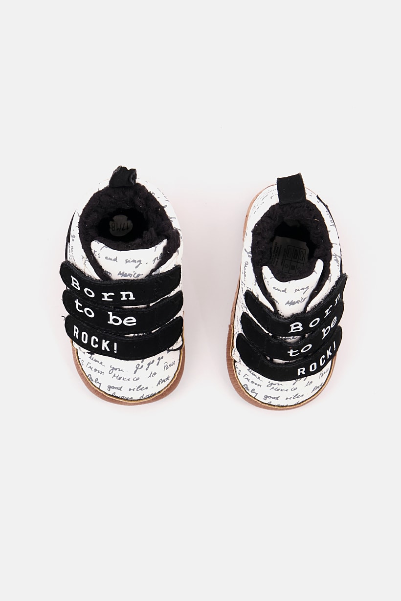 | sub_Categories | Toddlers & Babies, Footwear, toddlers boy velcro closure graphic shoes white black |