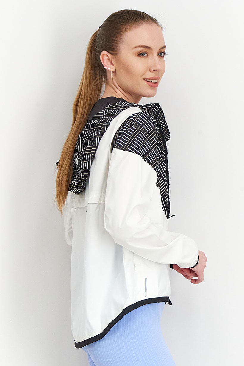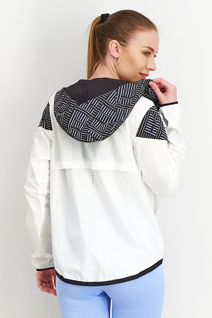 | nameOriginal | Women Sportswear Fit Hooded Long Sleeve Running Jacket, White and Black |