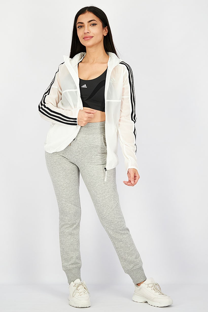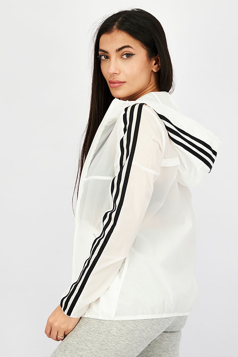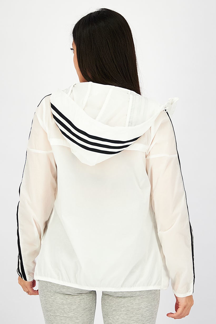 Bottom Hem : Straight, Care : Machine washable, Fit : Sportswear Fit, Size shown : Asian, Thickness : Light, Type of Sport : Training, Disclaimer : Product color may slightly vary due to photographic lighting sources or your monitor settings., Fabrics : 87% Nylon, 13% Elastane, Pattern & Print : Brand Logo, Sportswear Type : Jackets, Types of Closures : Zipper closure, Color Family : White,