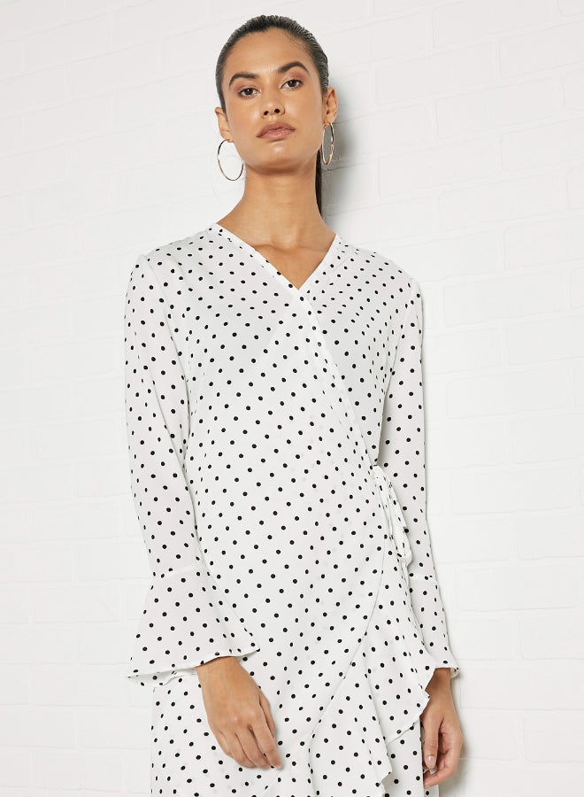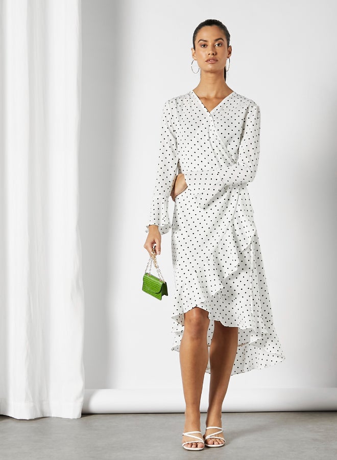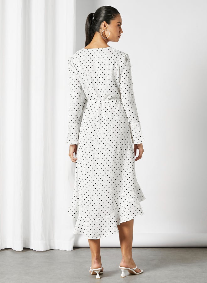 | nameOriginal | Polka Dot Printed Ruffle Detail Midi Dress White/Black |