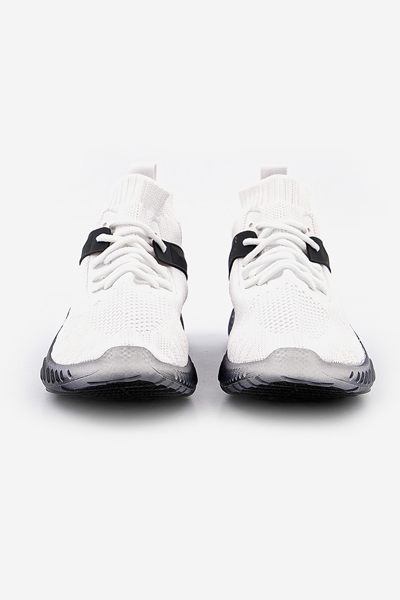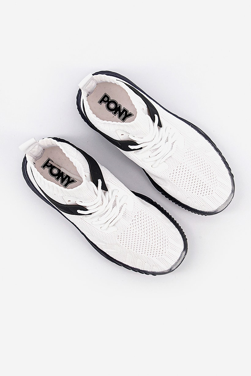 White and Black Rhythm Knit Sneakers for Women.