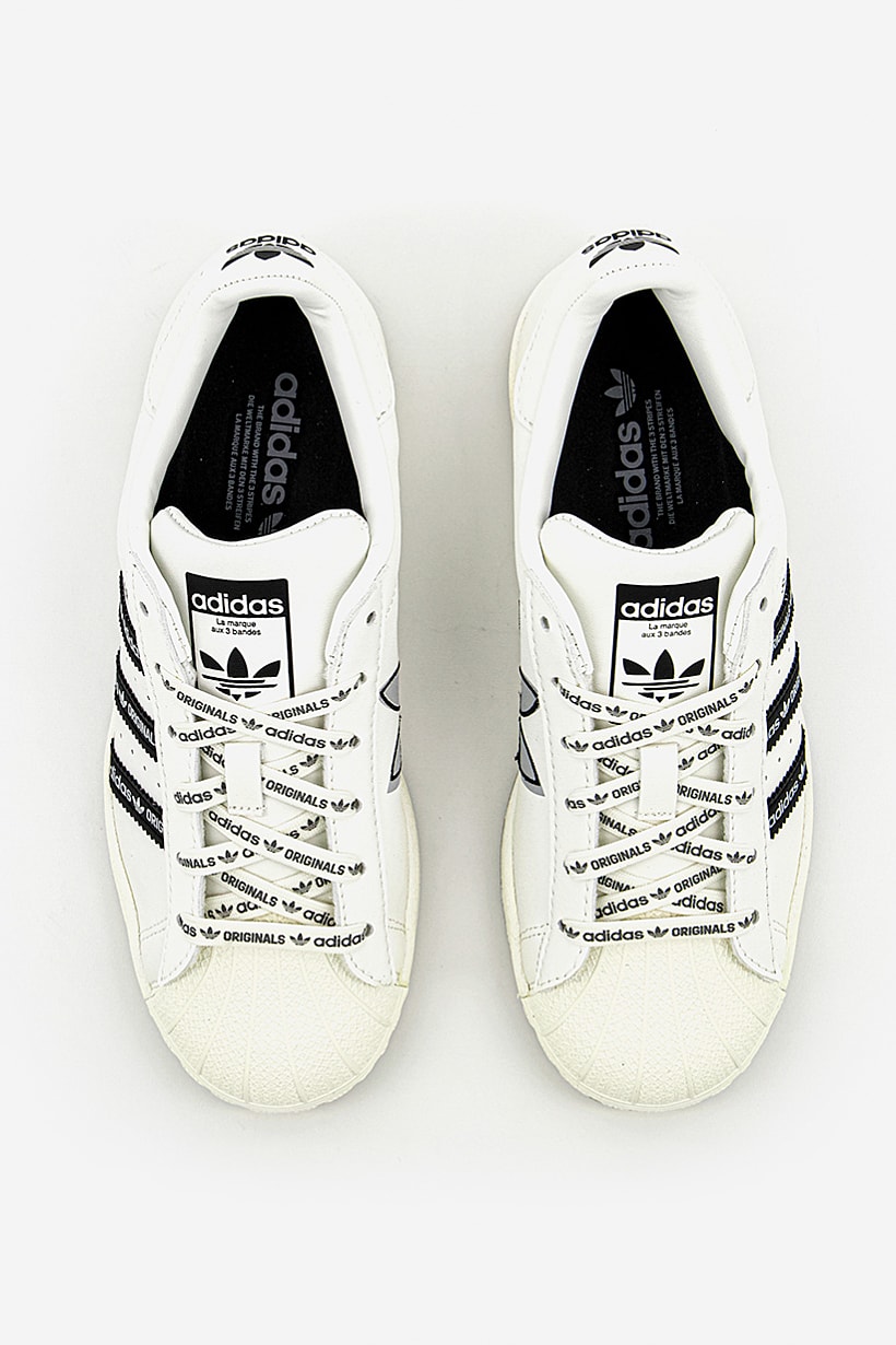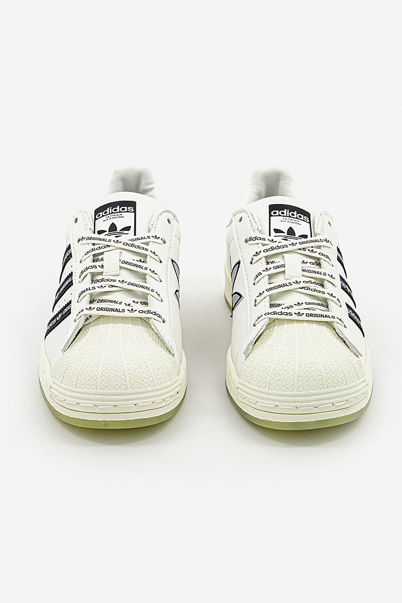 White and black running shoes for boys, named Superstar.