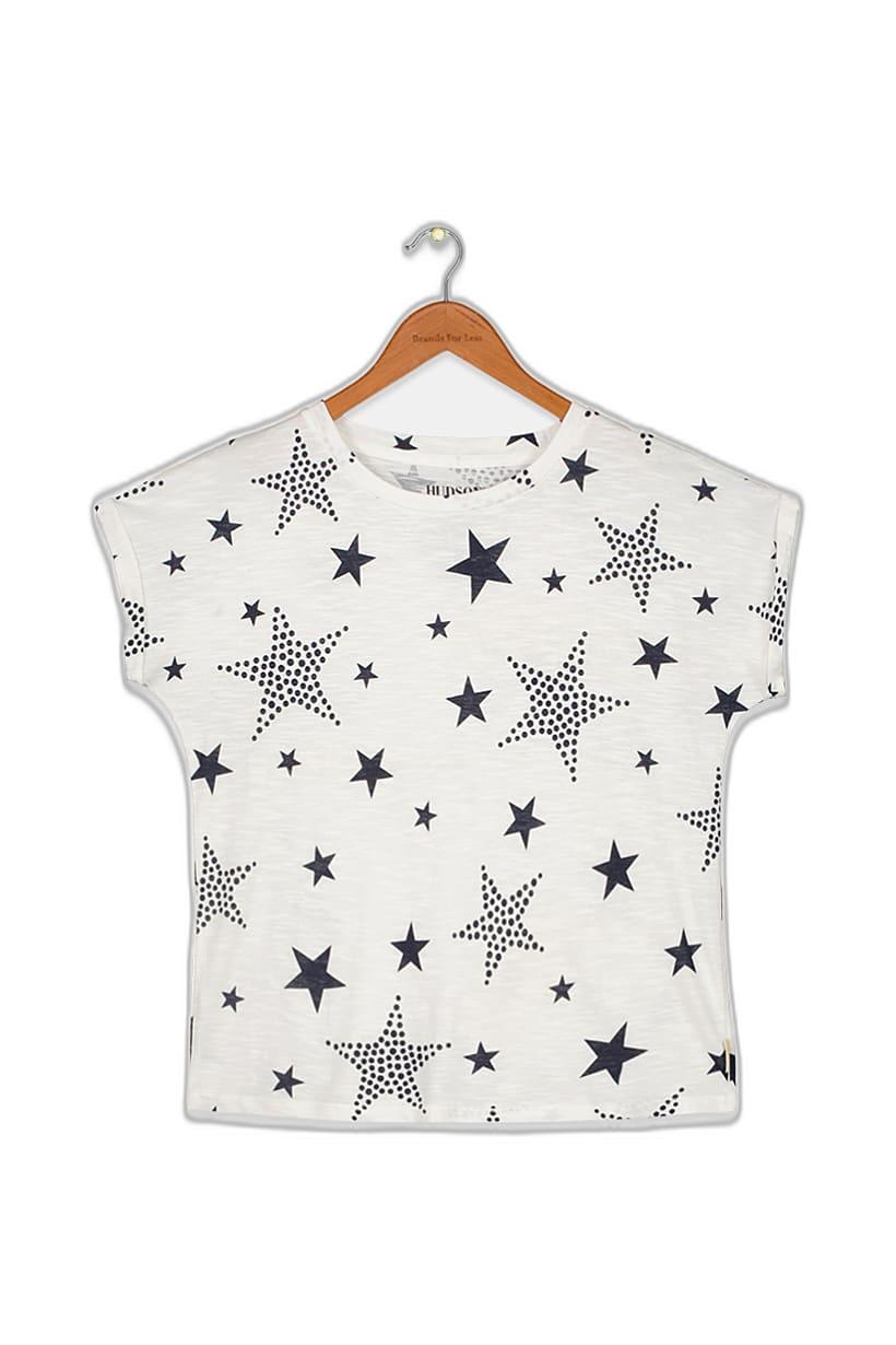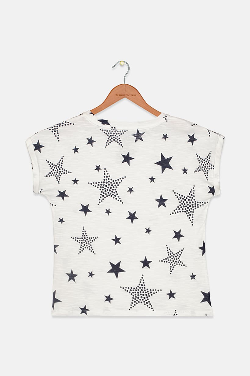 | nameOriginal | Kids Girl Crew Neck Cap Sleeve Star Print Top, White/Black |