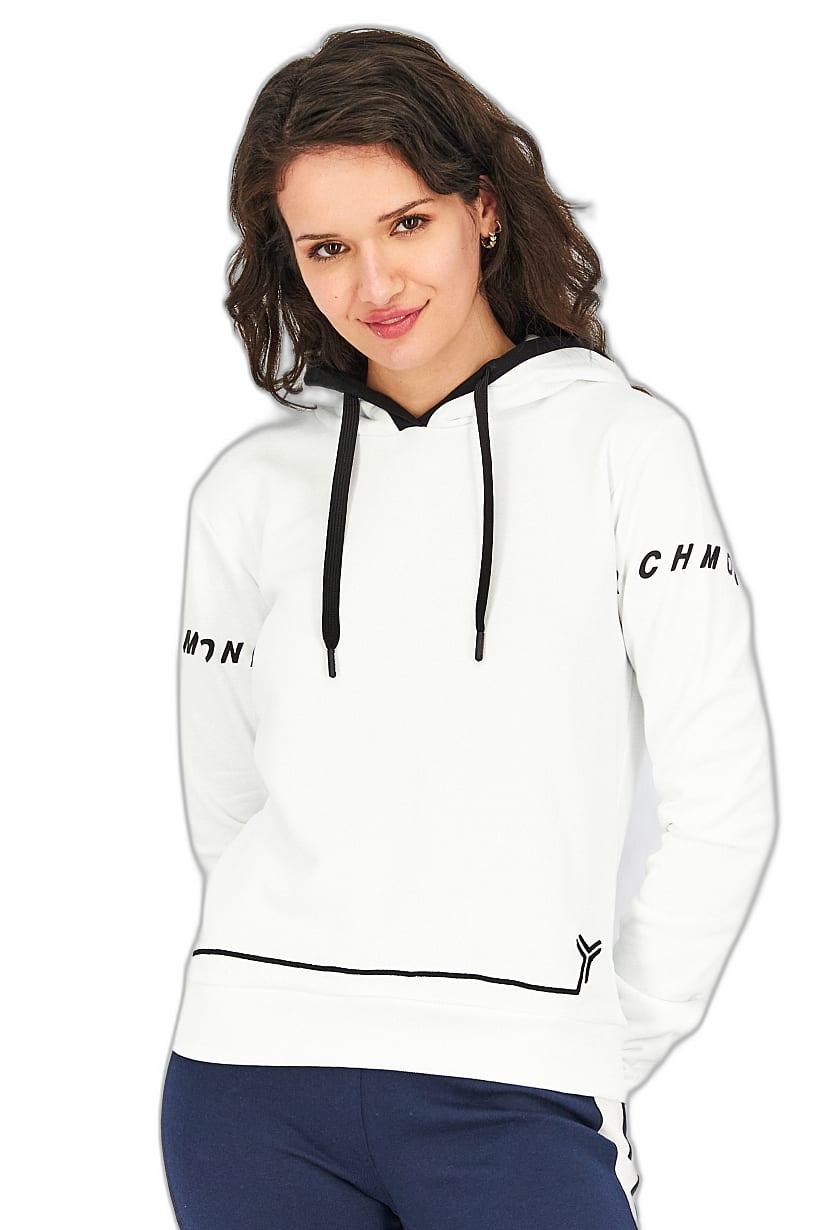 White and Black Women’s Long Sleeve Hooded Sportswear Sweatshirt.