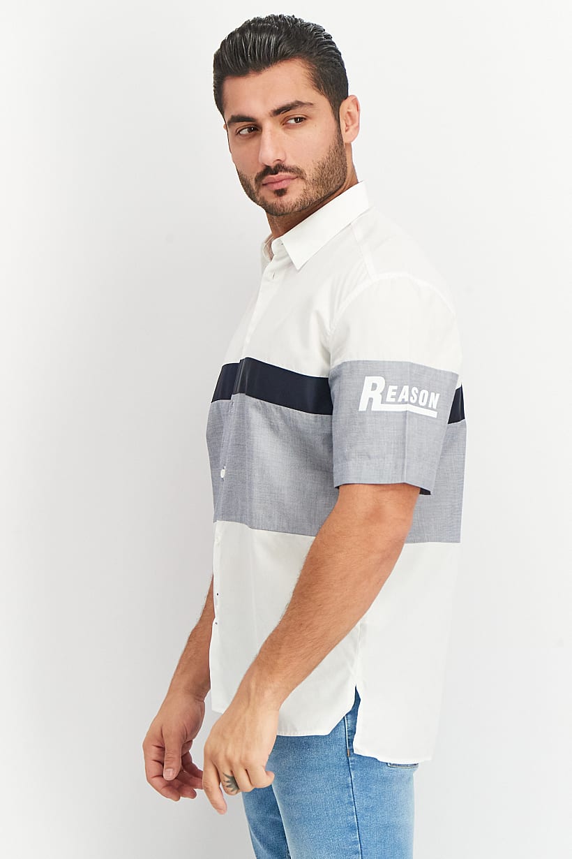 | nameOriginal | Men Loose Fit Colorblock Short Sleeves Casual Shirt, White/Blue |