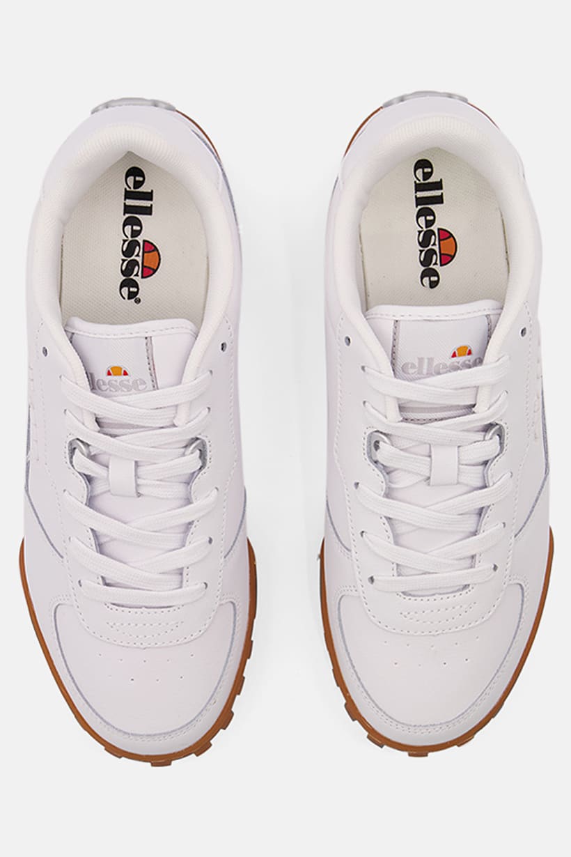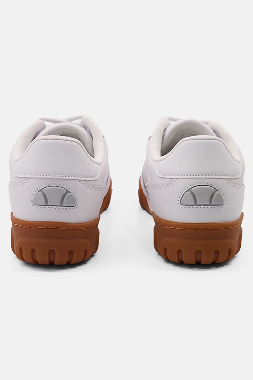 White and brown Men’s sport shoes with lace-up closure and cupsole.